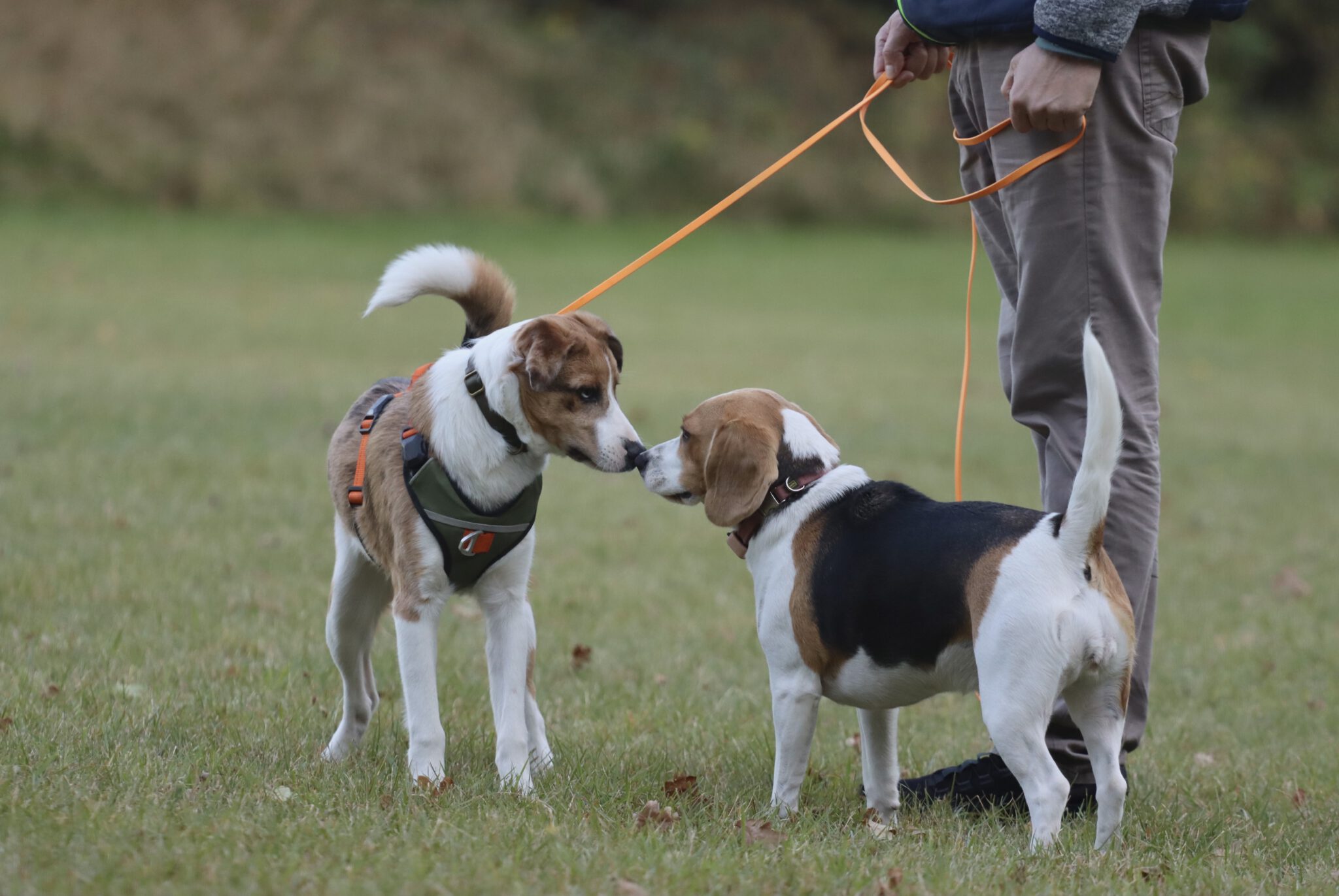 In gemeinsamen Lernspaziergängen lernt dein Hund, sich in Anwesenheit anderer Hunde zu entspannen und ruhig zu bleiben. Gleichzeitig lernst du, in Hundebegegnungen sicherer zu werden.